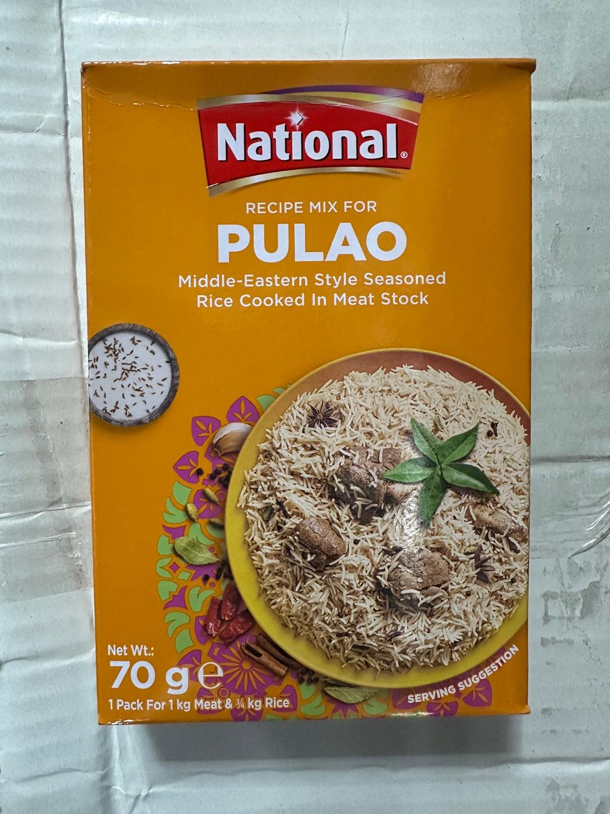 National Recipe Mix for Pulao brings authentic Middle Eastern-style rice cooked in rich meat stock, perfectly seasoned for traditional flavor.